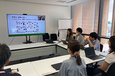 健康づくり推進委員会の発案にて、2カ月に一度、チーム単位で視聴するヘルスリテラシー向上動画の作成を行っています。動画は、毎月開催される安全衛生委員会でも視聴し、意見交換を行い、委員会メンバーから全社に展開しています。テーマは、食事や病気、運動、マインドフルネス等多岐に渡り、産業医・保健師・栄養士・ヨガインストラクター等を講師に迎えています。2024年は6回実施し、延べ88%のチームが視聴しています。