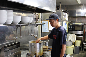 ラーメン屋さんで修行をしているときに、既に独立を考えていたんだ。独立にあたって自分のお店で提供する自分らしいラーメンは何だろうと考えていたときに、東京にある煮干しラーメンの名店の味にすごく感動したんだよ。「これだ!」と思って、自分らしい煮干しラーメンをつくろうって決めたんだ。