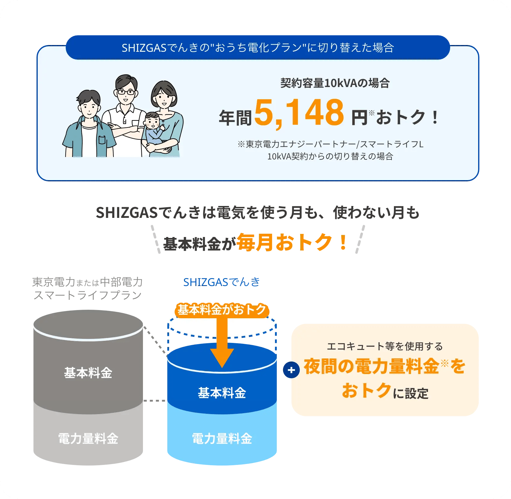 • ・SHIZGASでんきのご使用開始後、最低1年以上契約を継続していただく必要がございます。